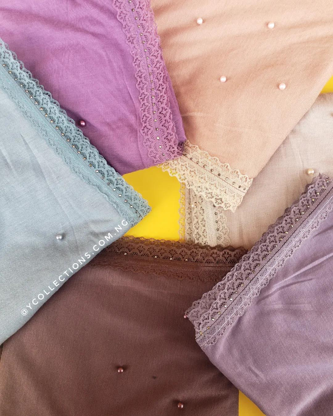 Buy Beaded Jersey Scarf with Lace Edge | Elegant & Versatile on SHOPHALAL SALZIMAR NIG LTD